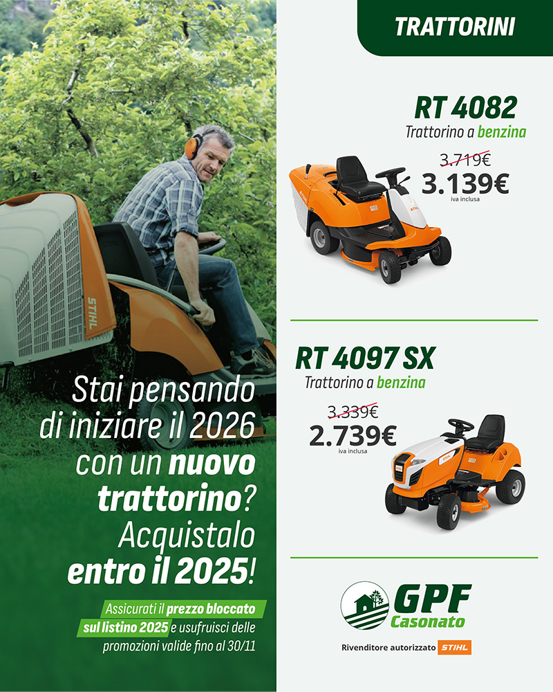 L’offerta include solo la macchina tosaerba, fino ad esaurimento scorte. Su richiesta, è disponibile con finanziamento a Tasso Zero.